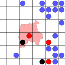 | Frühere Angaben: rot: vor 1980, blau: 1980 - 2005, schwarz: ab 2005 (ohne aktuelle Funde) |